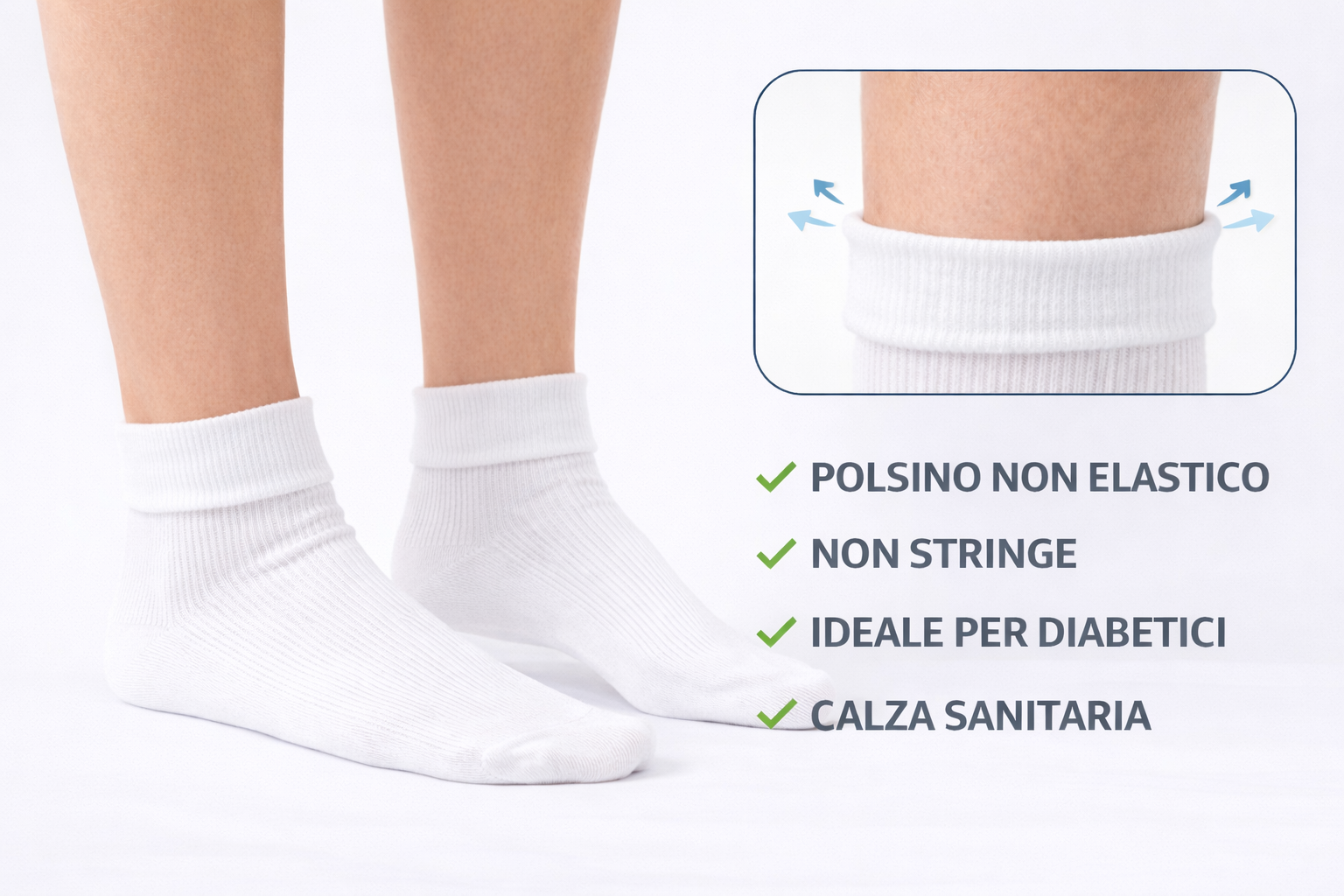 IL POLSINO DI QUESTA CALZA E’ OTTENUTO SENZA FIBRA ELASTICA, QUINDI E’ PARTICOLARMENTE INDICATA ALLE PERSONE CON DISTURBI ALLA CIRCOLAZIONE VENOSA PERIFERICA.