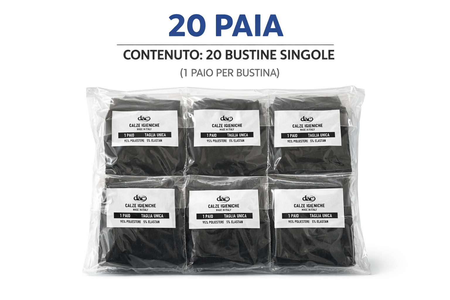 confezione da 20 paia in busta da 1 paio