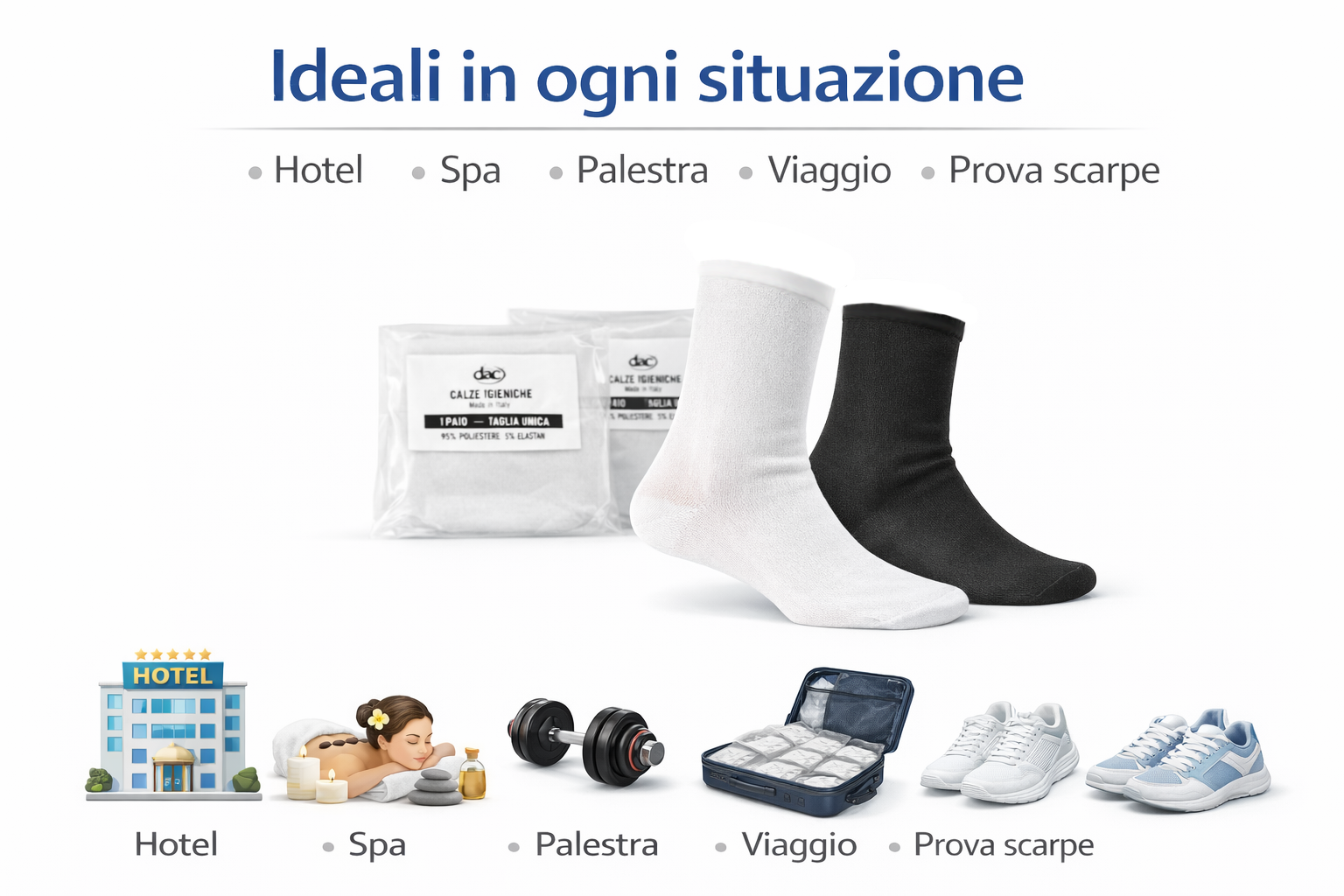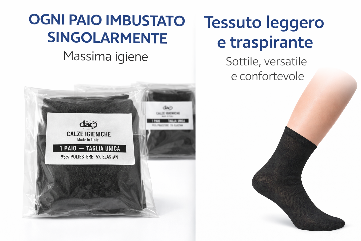 Calze igieniche leggere e pratiche, ideali per chi cerca comfort, pulizia e versatilità in ogni situazione.